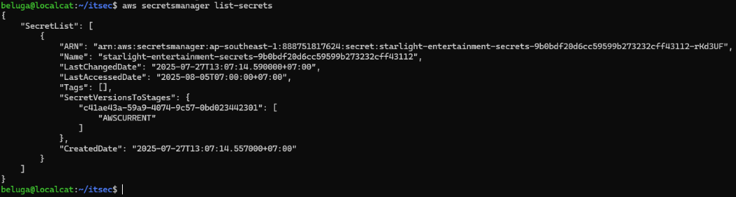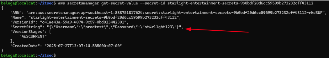 Berhubung enumerasi AWS tadi ada secretsmanager, jadi kami melakukan enumerasi terhadap service tersebut. Disini terdapat satu secrets yang kemungkinan besar digunakan untuk application amplify ini.
